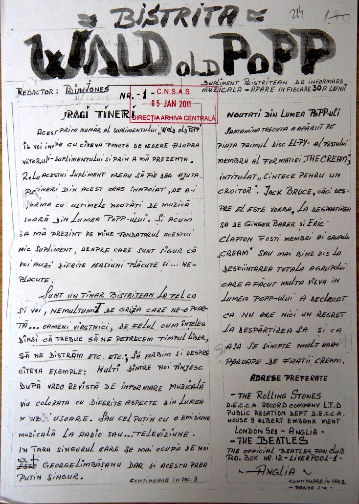Hidoș, Emil. Musical publication Wald old popp, in Romani...