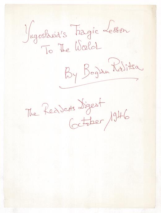 Radica, Bogdan. “Yugoslavia’s Tragic Lesson to the World”...