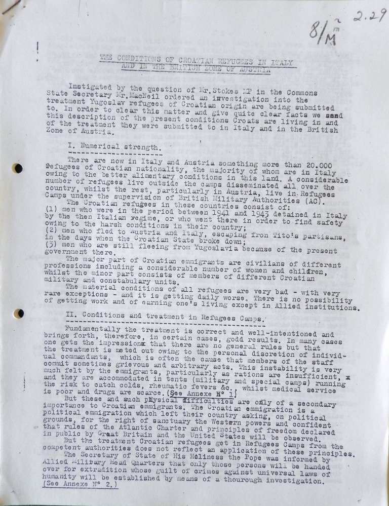 Izvještaj: Uvjeti života hrvatskih izbjeglica u Italiji i...