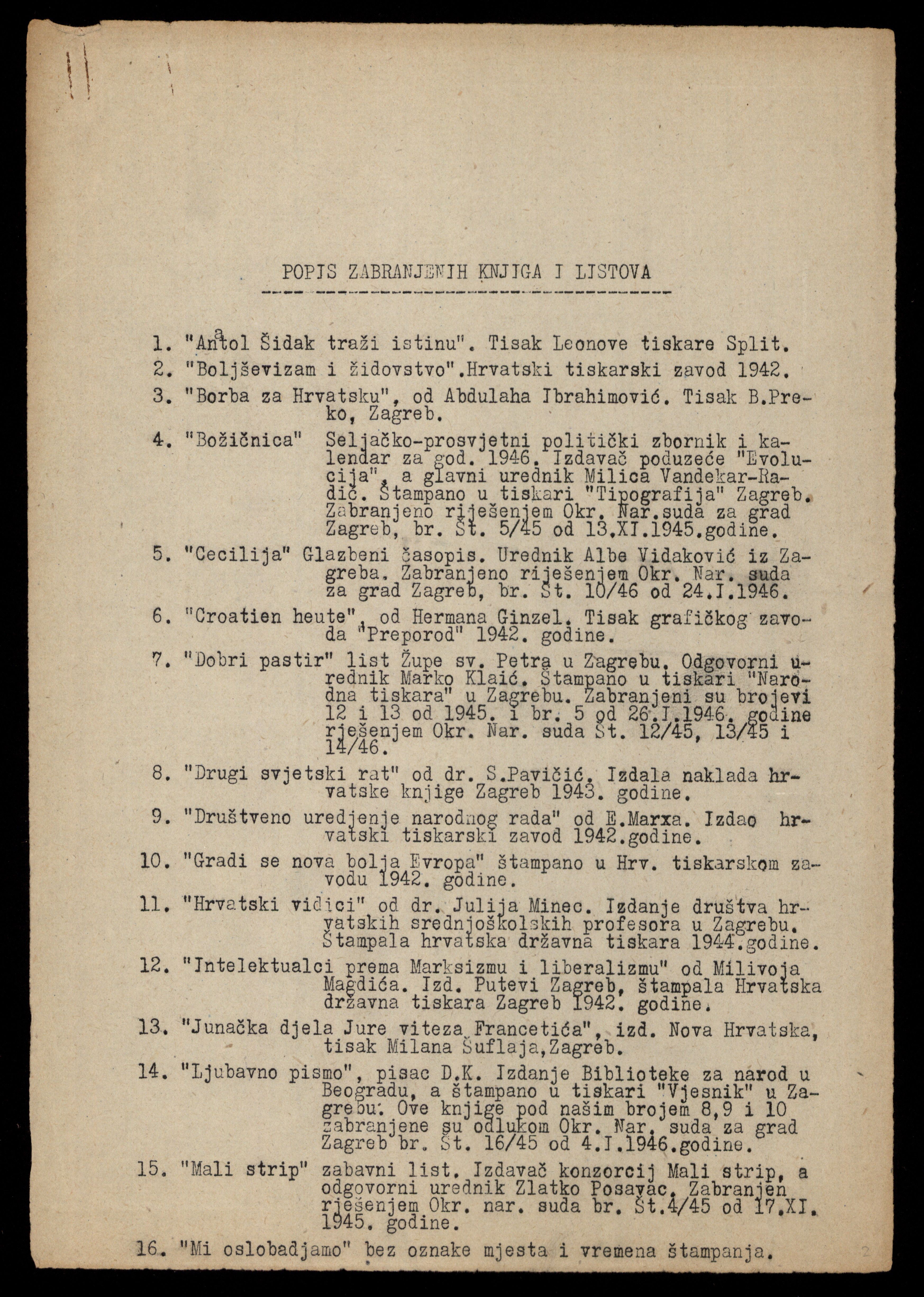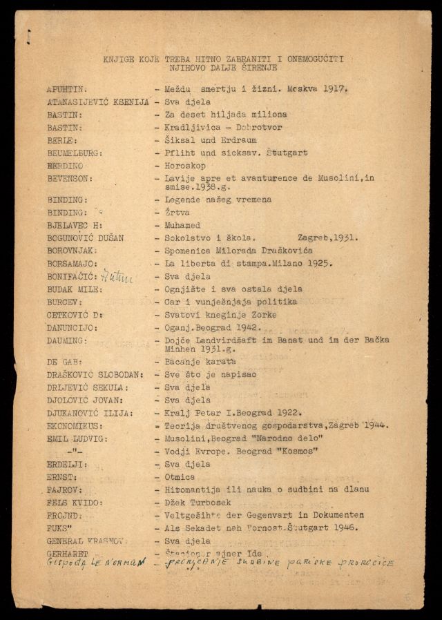 Lista zabranjenih knjiga i novina, 1946. Rukopis