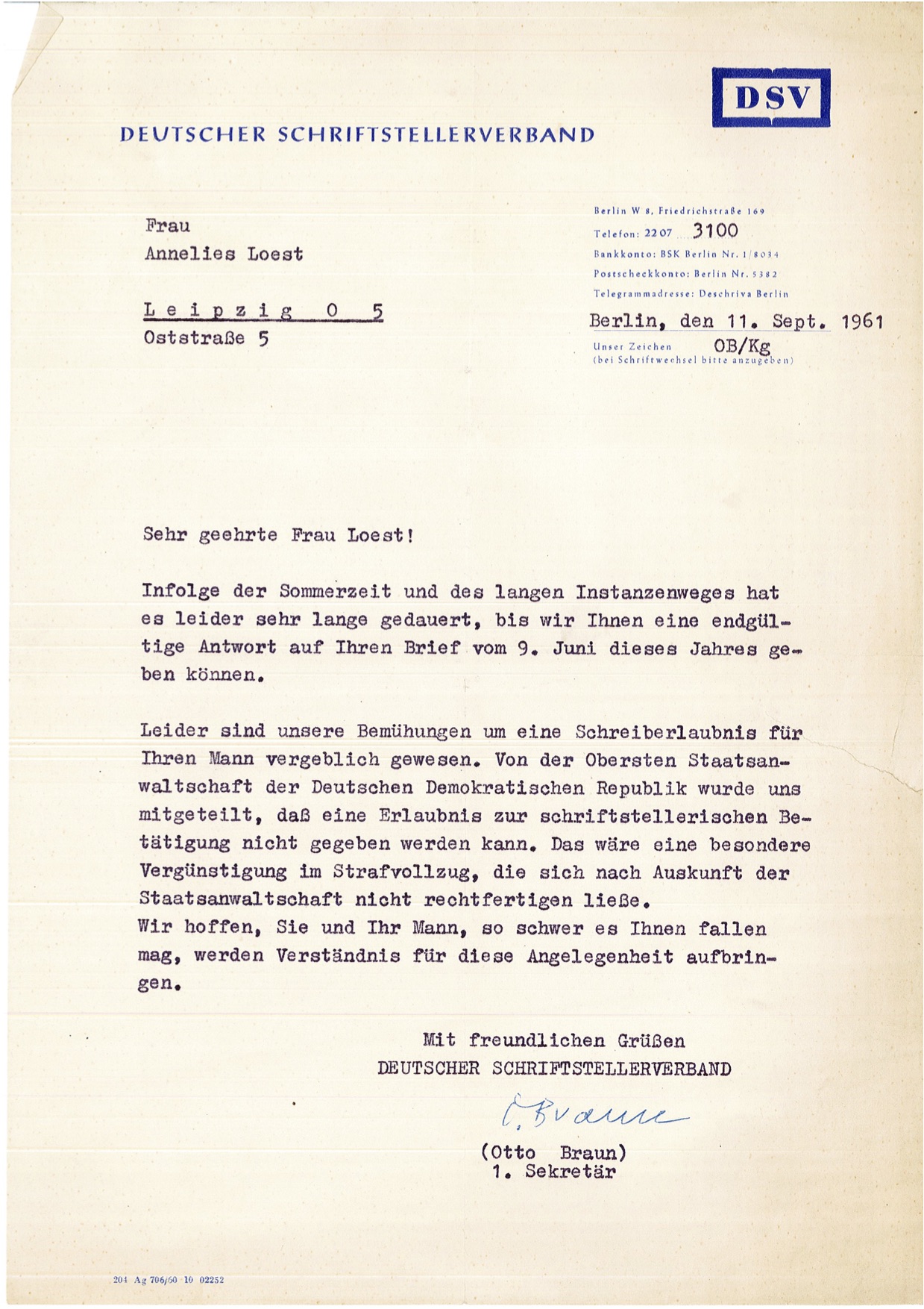 Letters from the Deutscher Schriftstellerverband [German ...