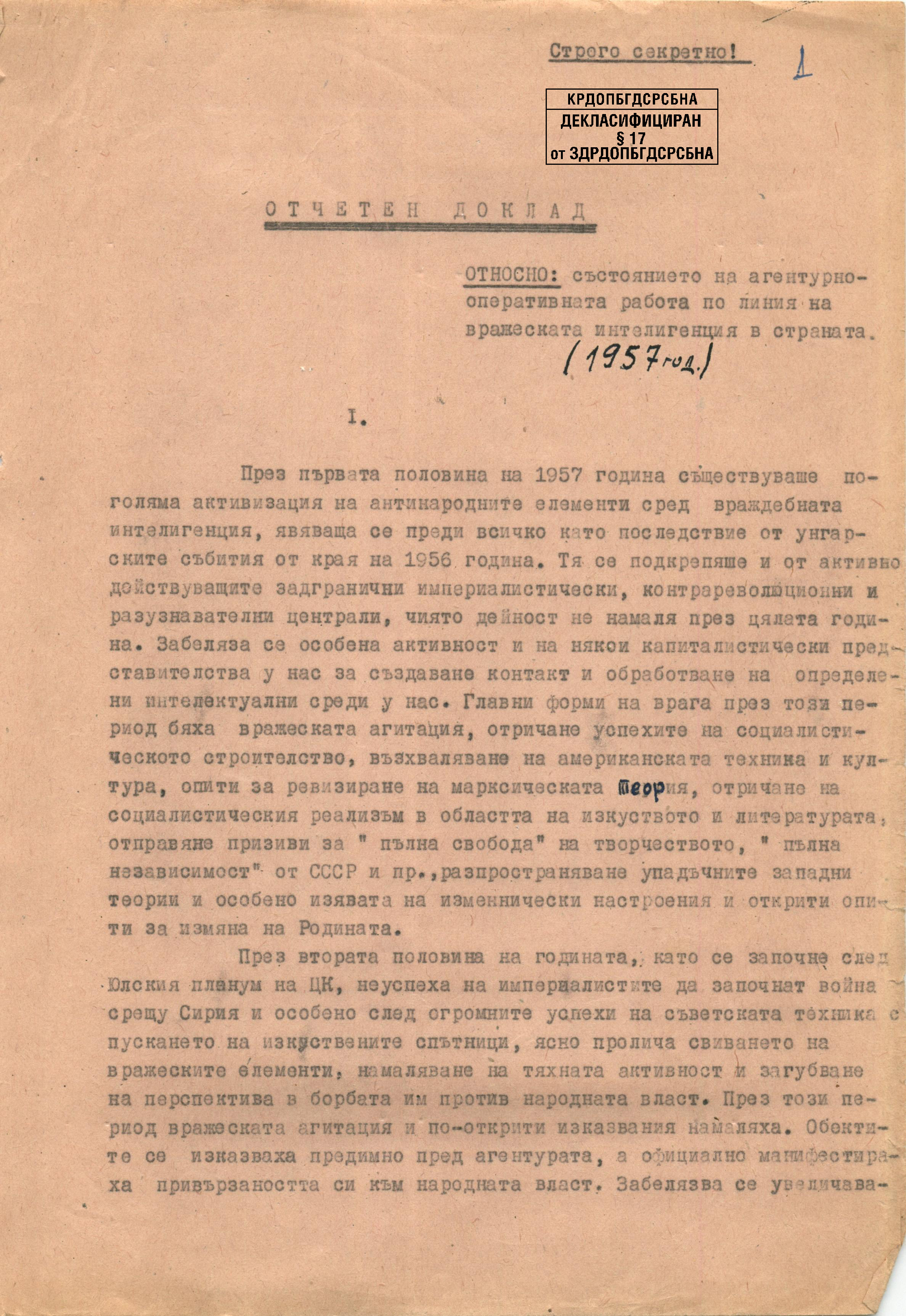 Operational plan of surveillance of intelligentsia and yo...