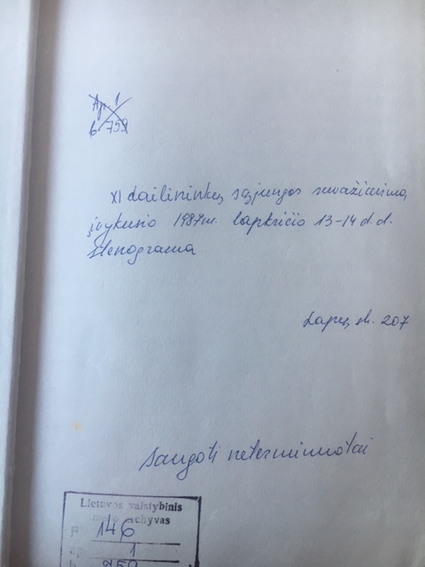 In November 1987, Cornea learned of the Braşov workers’ revolt from RFE radio programmes. Immediately afterwards she displayed a placard in front of her house in Cluj through which she expressed her solidarity with the workers. On 18 November 1987, she drafted 160 manifestos written in violet ink on sheets of paper similar to A5 format with the text: “Solidarity with the workers from Braşov” (ACNSAS, P 000 014, vol. 2, f. 109). These manifestos were spread with the help of her son Leontin Horaţiu Iuhas in various public spaces in Cluj, namely in the main squares and in factories (Cornea 2009, 194–195). On 19 November 1987, Cornea and her son were arrested by the Securitate and its employees conducted a detailed home search (Cornea 2006, 203). On this occasion the ink with which these documents were written and some copies of the manifestos were confiscated. The latter would be attached to the criminal file and invoked as proofs of the accusation during Doina Cornea’s interrogation by the Securitate in late November 1987 (ACNSAS, P 000 014, vol. 2, f. 109).