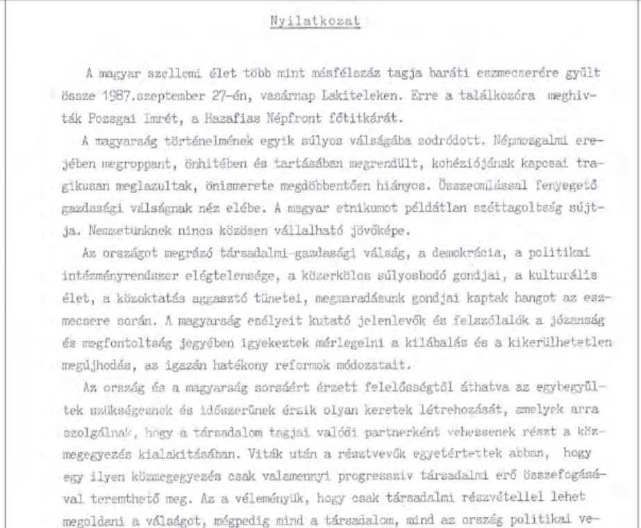Between September 1985 and November 1986, six meetings were held in four different localities in Romania in the homes of members of the group. The meetings encompassed a presentation (usually of a manuscript) followed by a debate, and all proceedings were recorded. The series of meetings was interrupted by a search and seizure performed by the Securitate in Molnár’s apartment in Bucharest. All documents related to Limes were taken and later studied by the authorities. By this time, the plan to make four Limes issues had already been completed, and the manuscripts for the first two issues had already been collected. The contents included transcripts of the Limes debates and studies and documents covering topics such as “national minorities,” “nationalism,” “totalitarianism,” “autonomy,” and “Transylvanianism” as a guiding ideology for the Hungarian minority in Romania. The topics also included the situation of the Csángó Catholic (Hungarian-speaking) population in Romania.